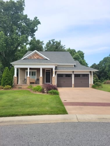 This new farmhouse home offers three bedrooms, two baths with a split floor plan, offering privacy for all the bedrooms. The open layout creates a perfect space for entertaining and connects the large great room with the kitchen and dining room.